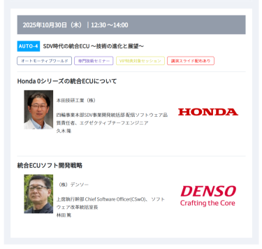 センサー・LiDARやカメラなど自動運転ソリューションをもつ出展社をまとめてご紹介!生成AI×開発効率のセミナーも掲載